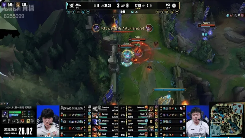 10分钟:IG越塔强杀对方女枪,AL中野支援赶到琪亚娜闪现换掉EZ