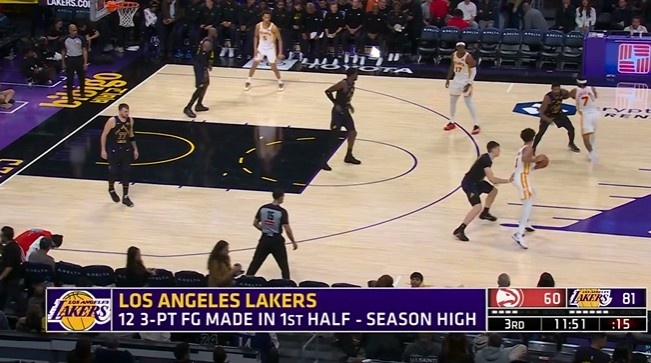 难得投这么顺!湖人半场12记三分球创球队赛季新高